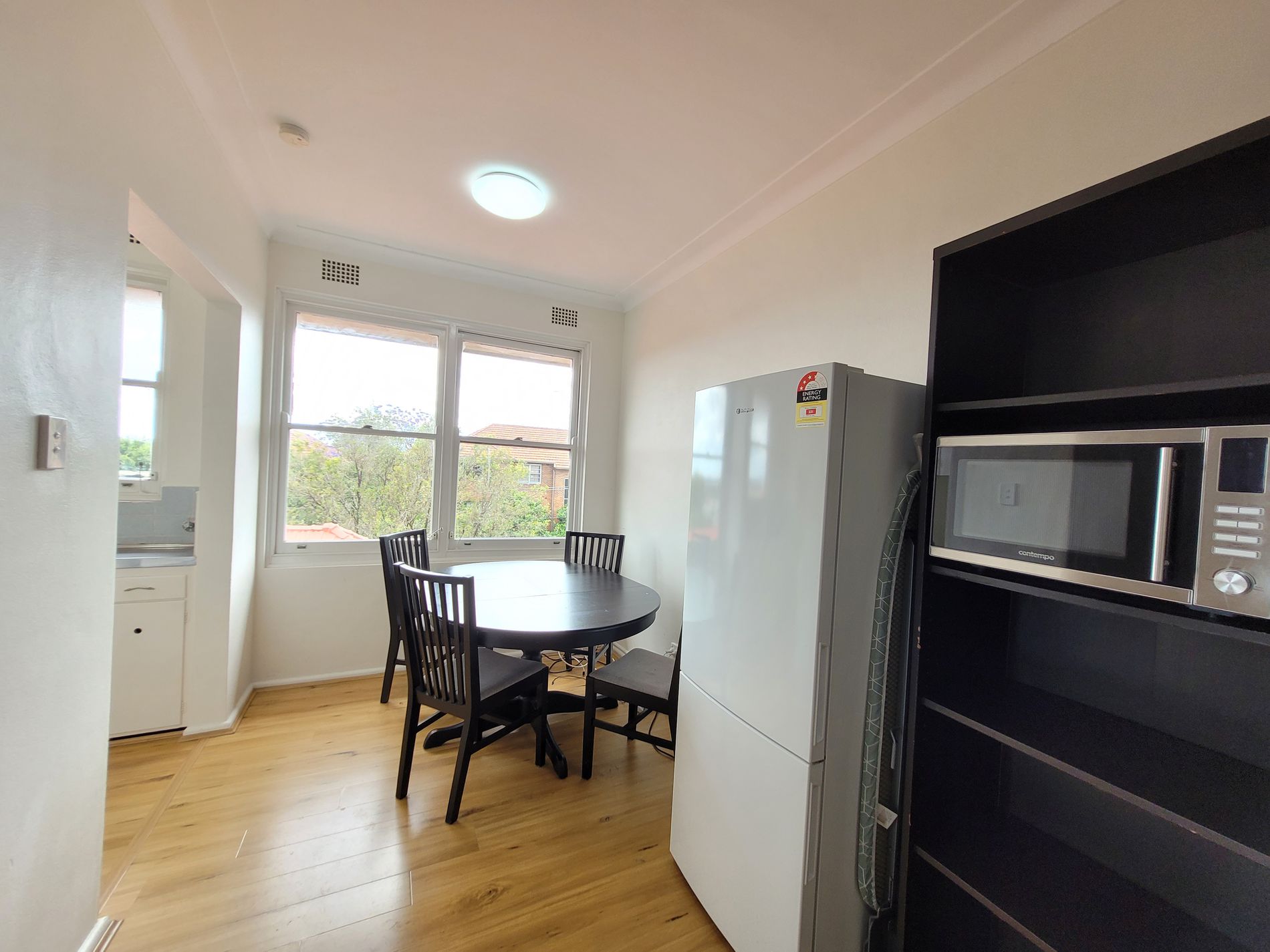 - 2 bedrooms (1 with built-in wardrobe)