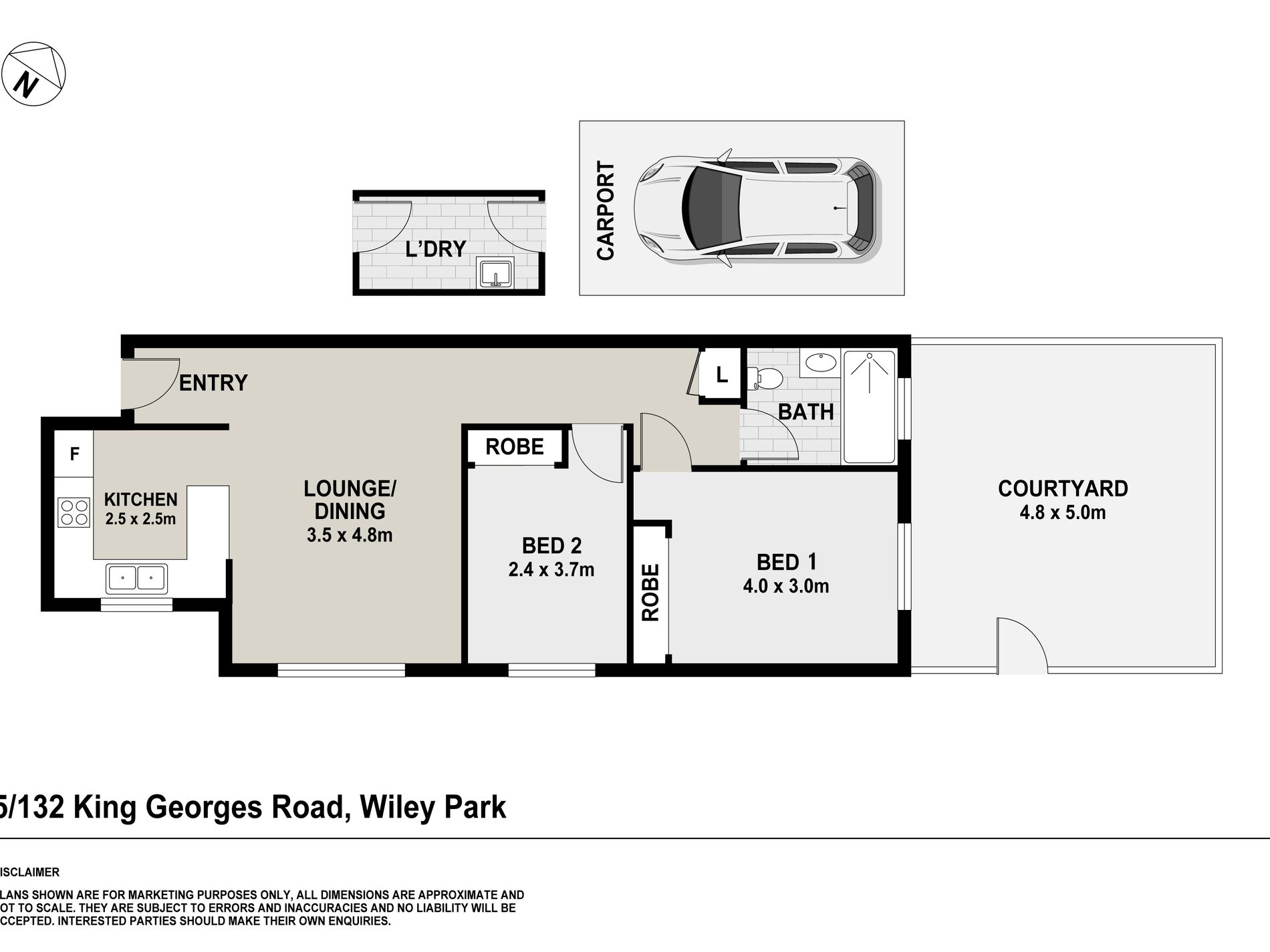 | 2 Beds | 1 Bath | 1 car space |