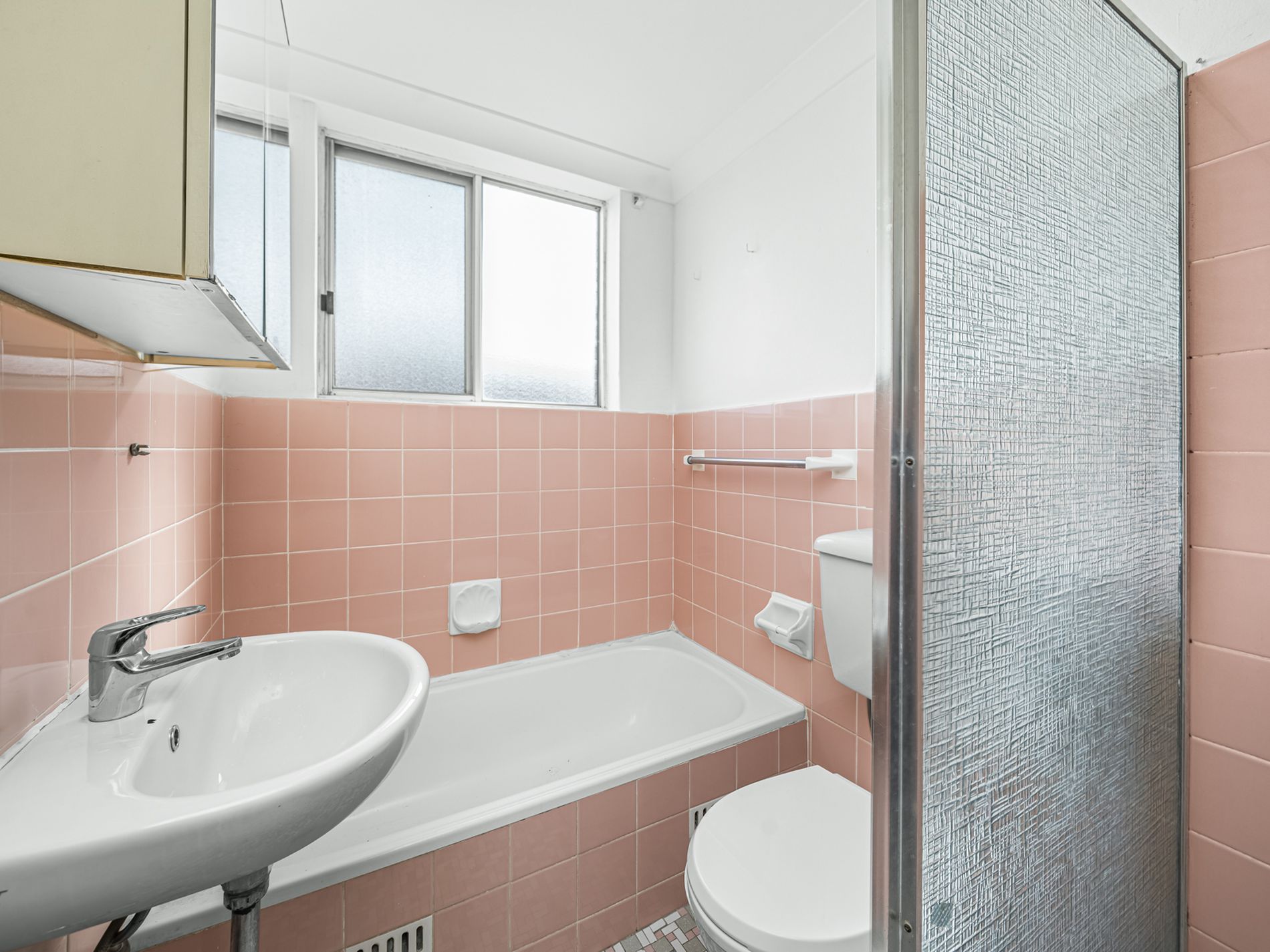 - Older style bathroom with separate bath & shower