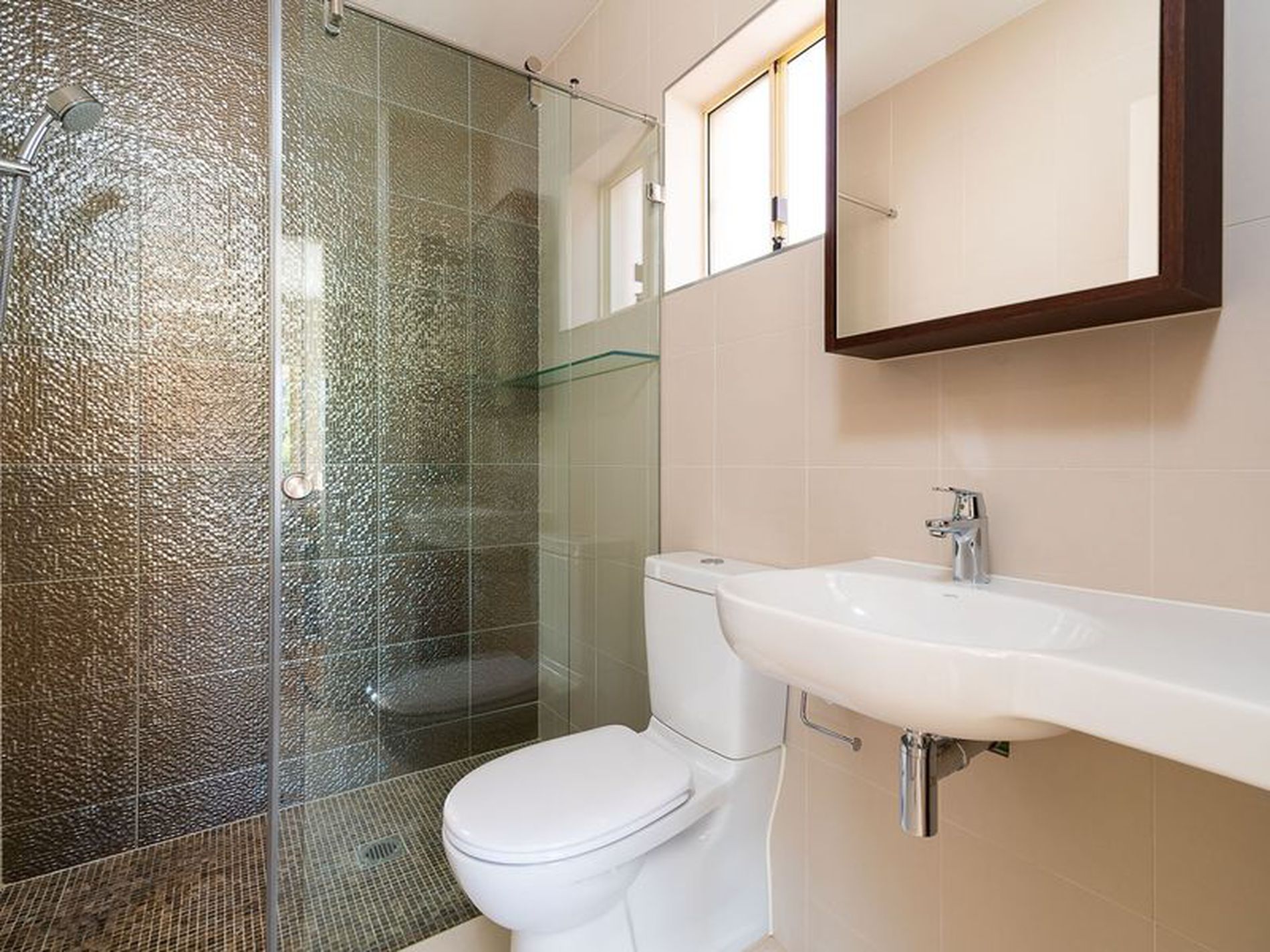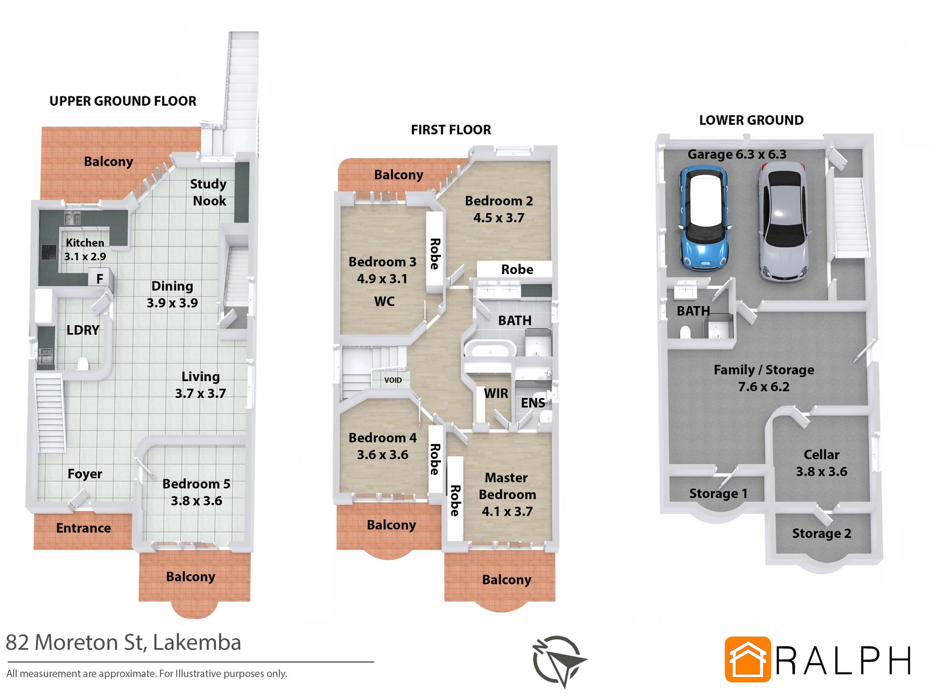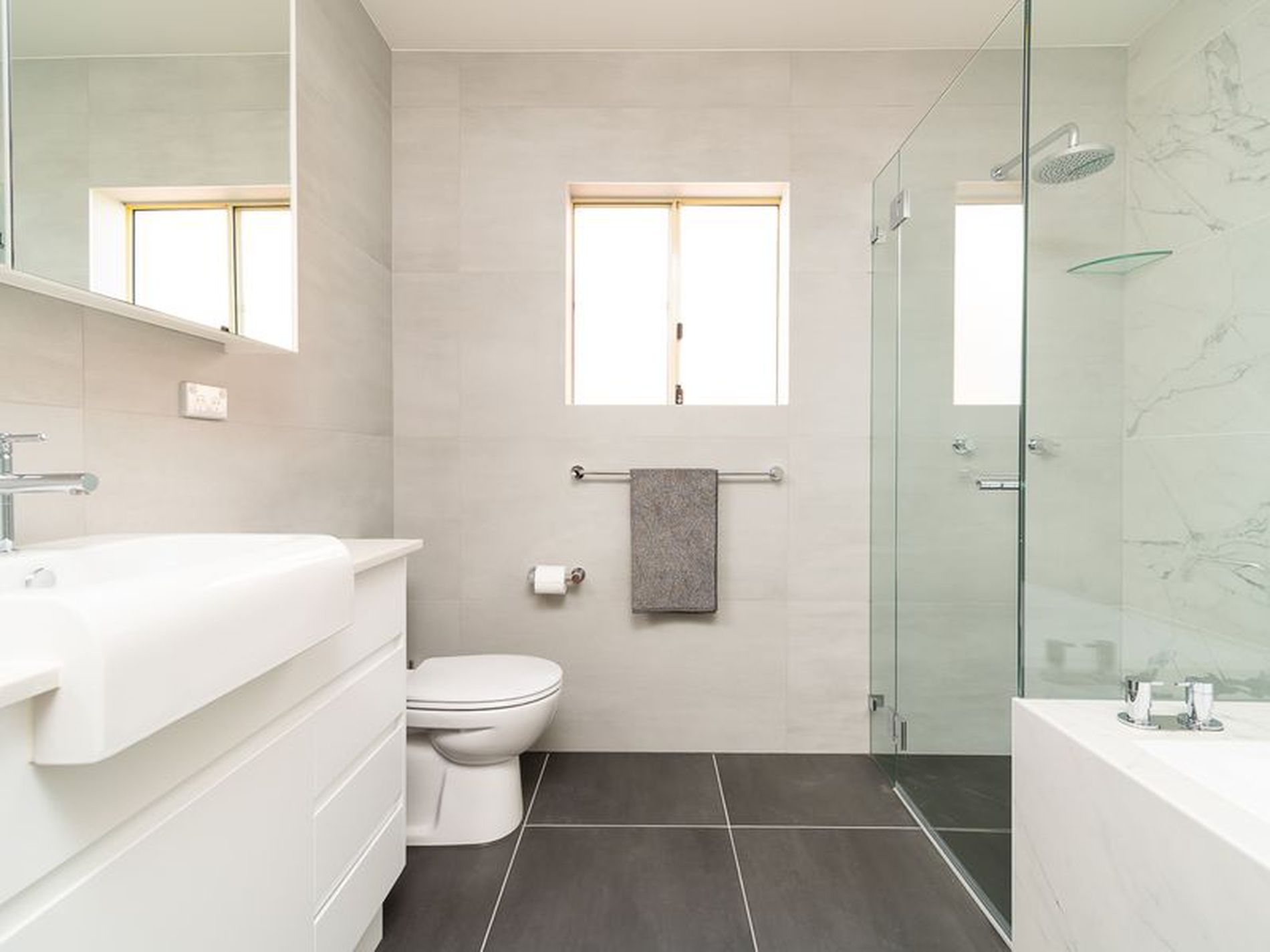 - Impressive 750mm x 750mm Italian porcelain tiles on the lower level & spotted gum floating floor on the upper level