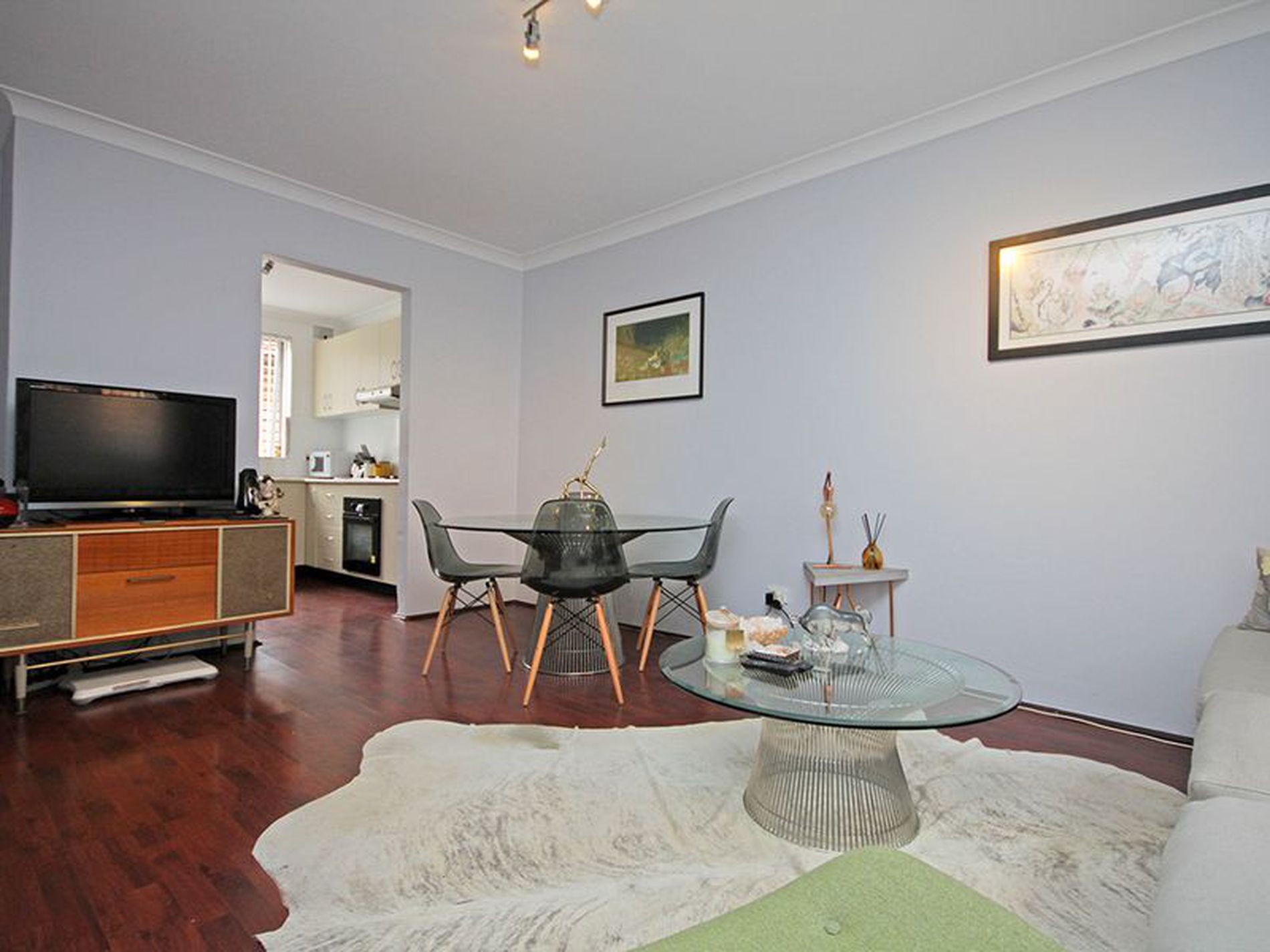 - Floating timber floorboards in living area