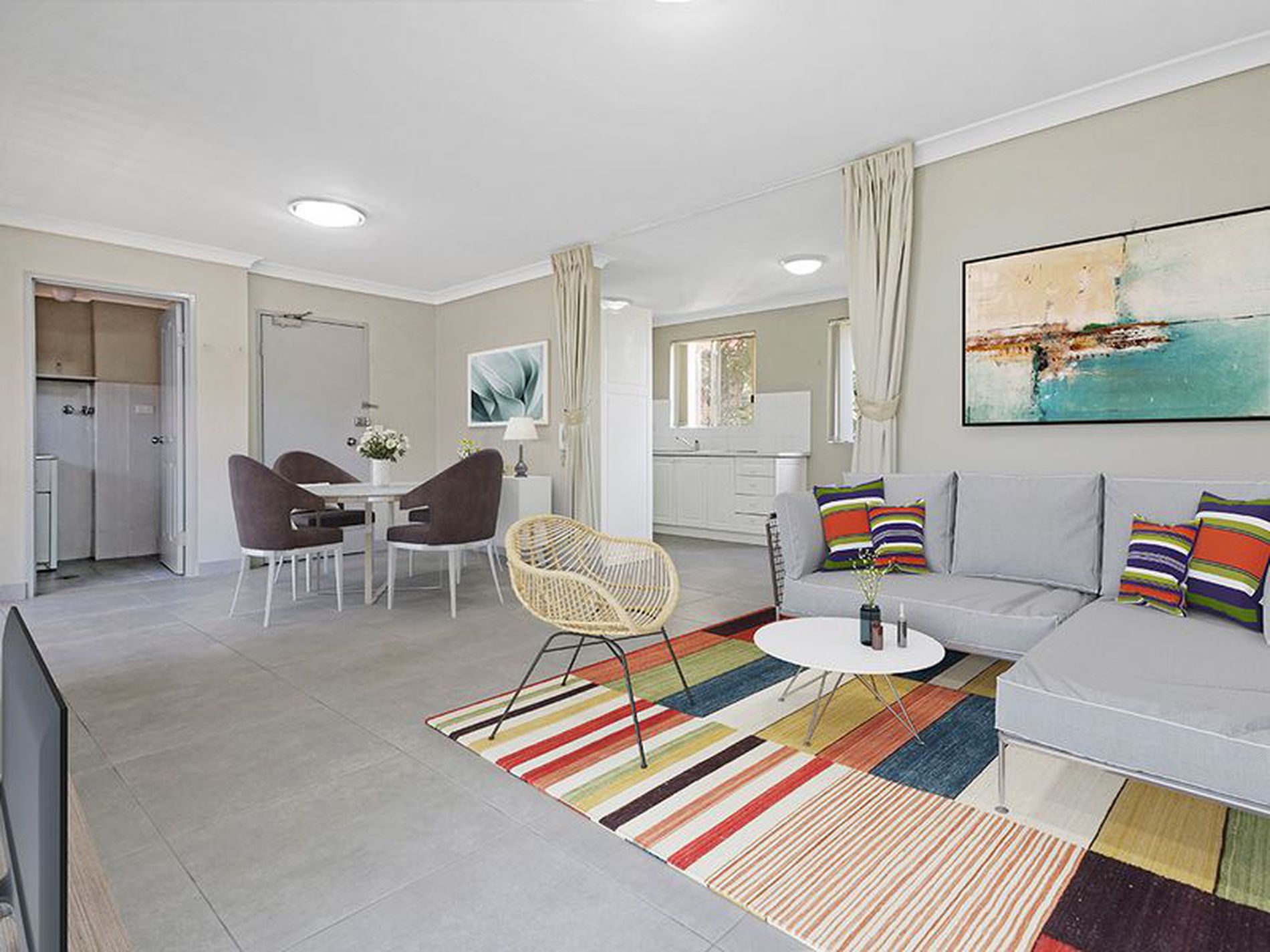 - Stylishly tiled throughout