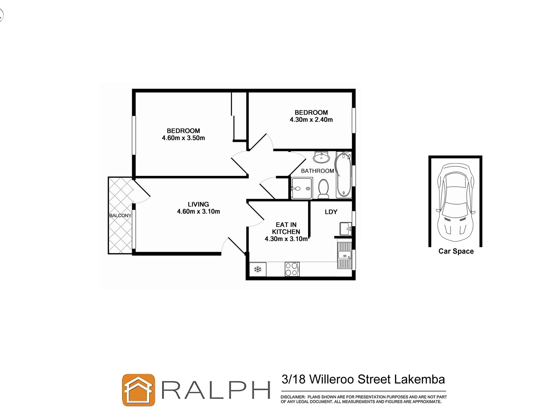 | 2 Beds | 1 Bath | Approx 0 Square metres | 1 car space |