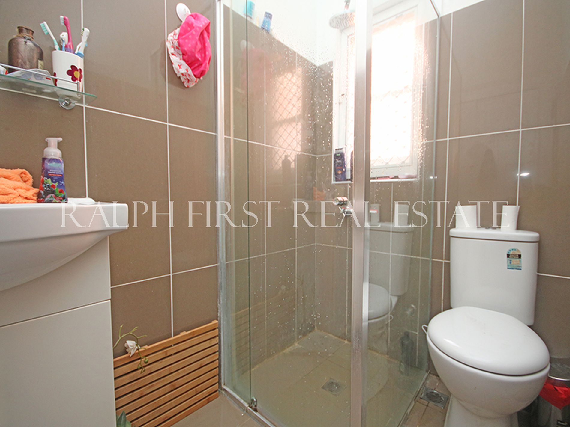 - Renovated bathroom with modern fittings.